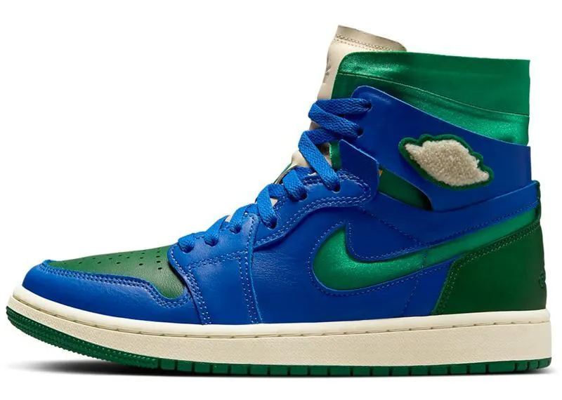 Made with the help of the Los Angeles model and stylist . the Aleali May x 1 High Comfort 'Califia' released as part of a larger collection. Drawing from May's time on her high school drill team . the shoe's upper is built with a leather base finished in Hyper Royal and Pine Green . with satin on the collar and Swoosh. Chenille marks the signature 'Wings' branding . while May's signature emerges on the left heel and the lace keeper includes an 'A' logo. Underfoot . top-loaded in the rubber cupsole provides cushioning.